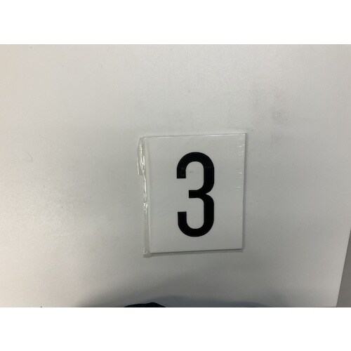 表示内容:3 | 取付仕様:粘着テープ | 縦(mm):150 | 横(mm):120 | 厚さ(mm):3 | 色:白 | その他仕様:粘着テープ付…