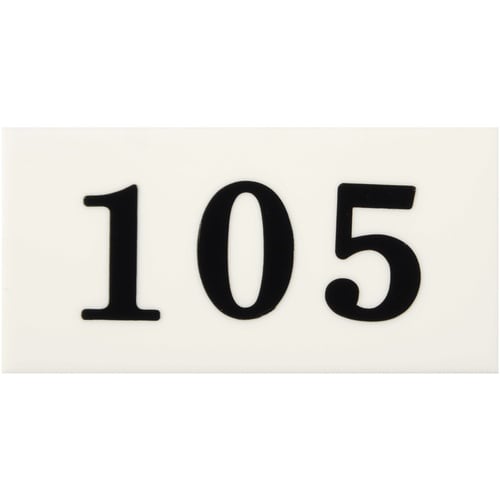 表示内容:105 | 取付仕様:粘着テープ | 縦(mm):35 | 横(mm):70 | 厚さ(mm):2 | 色:数字黒 プレート白 | タイプ:…