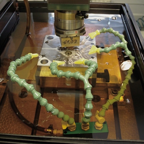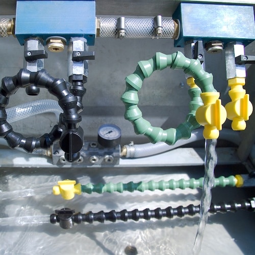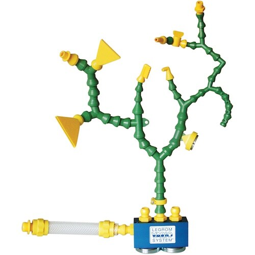 1/2インチ システムから 1/4インチ システムへ違径ジョイントを使用することで、両サイズの特長を有効利用できます。機械に取り付けた状態で姿勢を調整できます。 |