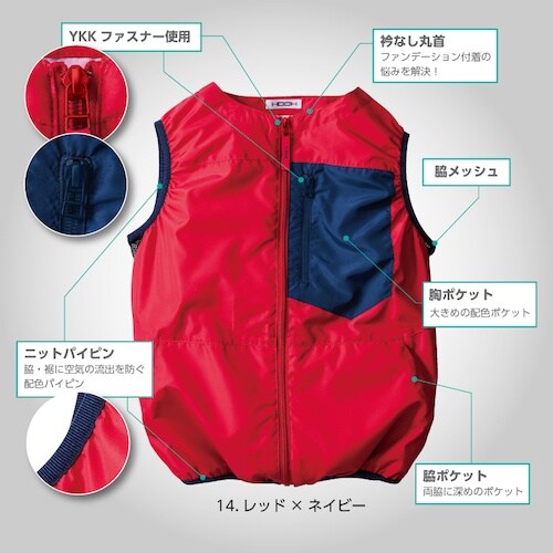 村上被服 HOOH 快適ウェア バイカラーファンベスト LL レッド×ネイビー A013-2430