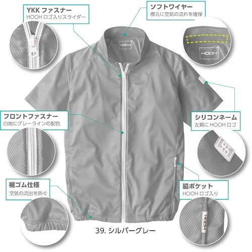 夏の作業に欠かせない空調機能を取り入れた空調ファンを取り付けれる作業服の快適ウェアです。HOOH独自開発の特殊編み、高密度ニット素材ウェア。快適な着心地と動きやすさを追求。暑い中作業をする人に。 |