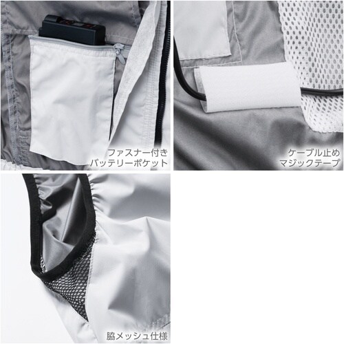 機能を絞ったシンプルなデザインでオンオフ問わずに使える快適ウェアで脇メッシュ付きにより更に涼しさUPです。ファスナー付きバッテリーポケットにより、バッテリーの落下防止機能を備えました。 |
