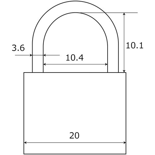 付属鍵本数(本):6 | 幅(mm):20 | ツル幅(mm):3.6 | B(mm):10.1 | C(mm):10.4 | ロック方式:シングル …
