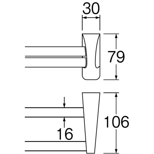 幅(mm):610 | 奥行(mm):106 | 高さ(mm):79 | パイプ:ステンレス | セット付属内容:ビス | 単位:1個