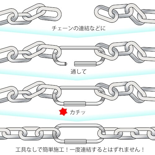 ※接合部は一度連結するとはずれない構造になっています。(接合部の差込は1回限りです)慎重にお取り扱いください。吊り下げる場合は、必ず制限荷重を守ってください。破損や落下、脱落の危険があります。命綱等には使用しないでください。ねじって使用しないでください。強度の低下をきたし、危険です。ひっぱり強度は静荷重による参考値です。ご使用の環境や状況により変動します。注意してご使用ください。