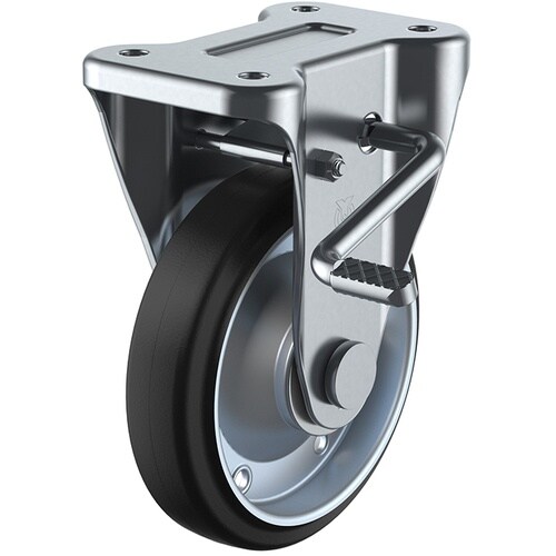 標準的な大型キャスターで、重量物の運搬に数多く使用されています。走行性に優れ、静電気を除去することができる導電性ゴム車輪を使用しています。重量物の運搬に。