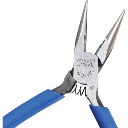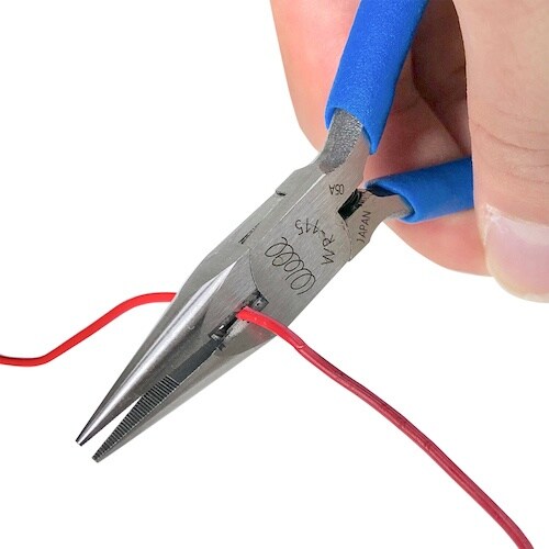 先端が細くなっているので、狭い箇所での作業に最適です。刃は高周波焼入処理済みでペンチより鋭くしてあるので、銅線や細い鉄線も楽に切断できます。 |