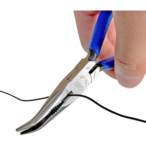 狭く屈曲したところでの作業に大変便利なミニサイズで先曲りタイプのラジオペンチです。先端が細く曲がっているので、電気配線・自動車修理、その他障害物のある場所でも作業が容易にできます。 |