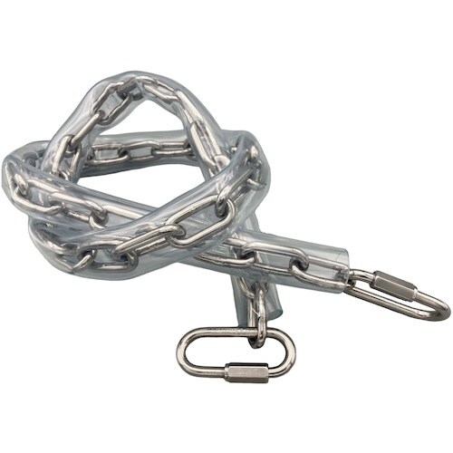 溶接チェーンは切断済み、両側にフックと保護チューブを取り付けています。オールステンレス製のため、防錆性・耐候性に優れています。転倒防止、進入禁止、境界用の仕切りに。