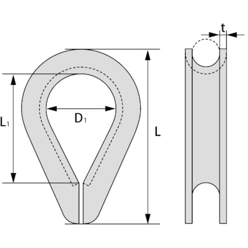 適合ロープ径(mm):16 | L(mm):95 | D1(mm):40 | L1(mm):64 | t(mm):2 | 材質・仕上げ:溶融亜鉛メッキ…