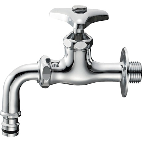 吐水口が回転するタイプの水栓です。パイプ角度90度で真下に吐水するタイプ。ジョインターを接続することでワンタッチでホースと蛇口がつながります。散水用の水栓として。 |