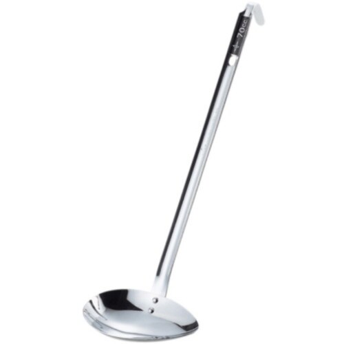 片側に注ぎ口がついているので、小さな器にも注ぎやすいレードルです。オールステンレス製なので、錆びにくく耐久性に優れています。柄の先がフック状なので、鍋の縁に掛けたり、吊して収納する事が可能です。 |