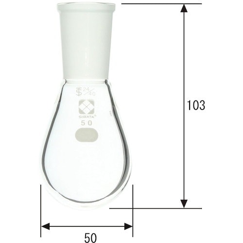 野菜のなすの形をしたフラスコです。肩の部分がないので、中の試料を取り出しやすく、洗浄がしやすい構造になっています。 |