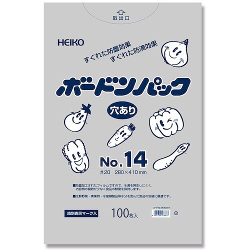 シモジマ HEIKO ボードンパック プラマーク入り #20 No.14 穴あり 100枚入り A013-7557