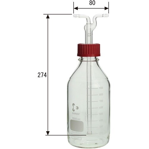 上部2ヶ所のノズルからガスを通気することによって、びん内部の液体や顆粒等に物質を吸収させます。不要物質の吸着によってガスの純度を高めることや、内部液に吸収された物質の捕集等に利用できます。 |
