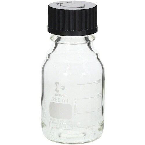 ねじ口びんに穴あきキャップとシリコンパッキン(穴なし)をセットしたものです。pHのコントロール用薬液びん、培地びん、生成物の取り出し、保存用、消泡剤用などに適しています。 |