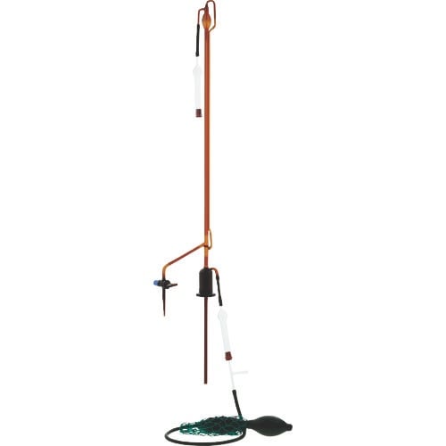自動ビュレットは、ビュレットに比べ薬液の補充が2連球ゴムスプレーの操作で安全かつ正確に行えます。ゼロ(目盛)が自動的に調整できる構造となっており、ビュレットのゼロ合わせのコック操作の必要がありません。 |