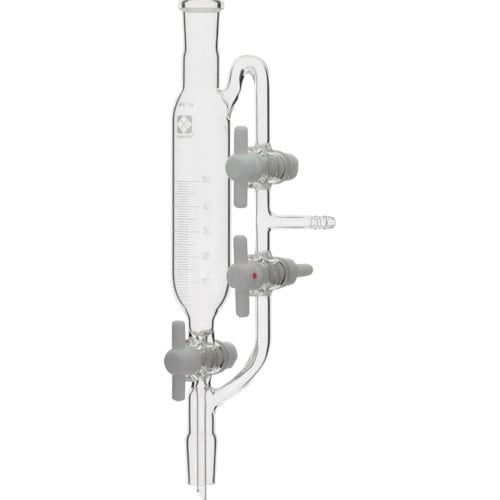 下部に接続された受フラスコ等へ分留するのに便利な目盛りとPTFEコックの付いた受器です。減圧分留や分留液を滑らかに流下させることが可能です。 |