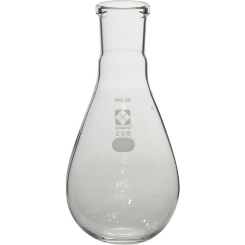 平底タイプのなす形フラスコです。ロータリーエバポレーターにサンプルを仕込む際、『できる限り省スペースで作業したい』 『フラスコを立てて使用したい』 とのご要望を受け商品化いたしました。 |