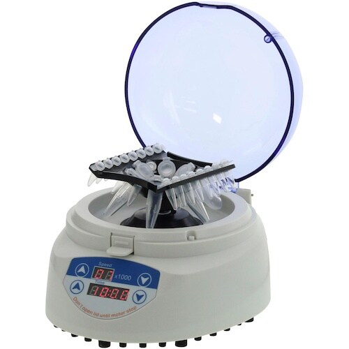 小型軽量な卓上タイプの遠心機です。異なる種類のチューブを遠心できます。フタを閉めるだけで開始できます。タイマー付きです。回転数は3段階から選択できます。 |