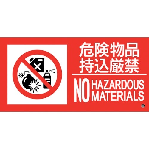 表示内容:危険物品持込厳禁・NOHAZARDOUSMATERIALS | 取付仕様:貼付タイプ | 縦(mm):250 | 横(mm):500 | 厚…