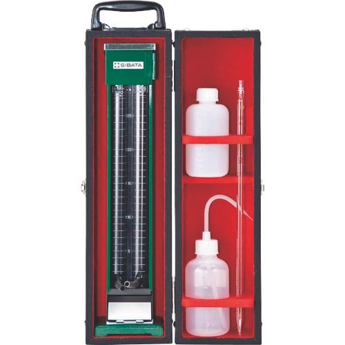 濁度計S−100型は、2本の比色管の1本に濁度標準液を、ほかの管に被測定液を入れ、この2つの濁度が同一に見えるまで液量を加減して試料の濁度を計算から求めます。 |