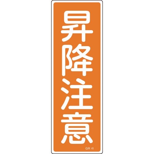 日本緑十字社 緑十字 短冊型安全標識 昇降注意 GR41 360×120mm エンビ 縦型 A013-9099