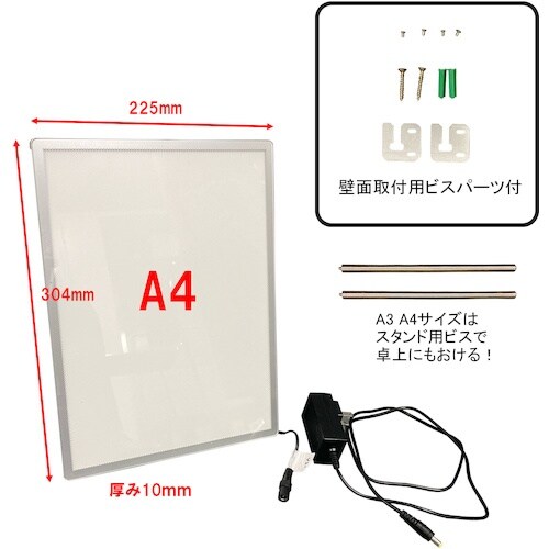 厚さ10mmの超薄型のLEDパネルです。スリットから差し込むだけでPOPの入替が可能、縦と横どちらでも使用できます。正面はガラス製なので傷が付きにくいです。 |