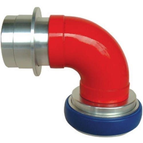 町野式(差込式・ワンタッチ式)金具のホース・配管や資機材を接続する金具です。町野式金具の吐出側角度を90°横向きにします。 |
