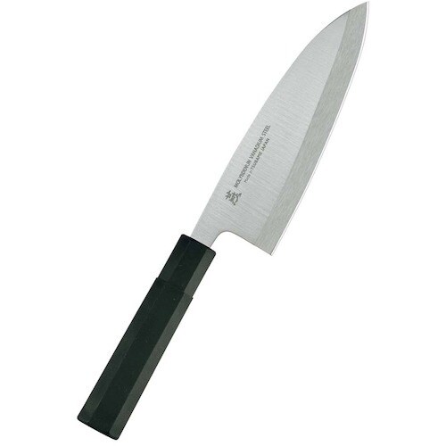 ハンドルは一体成型でエラストマー樹脂に抗菌剤が入っているため、衛生面に優れています。刃は水砥で本格的な刃付けを施し、鋭い切れ味が長く持続します。