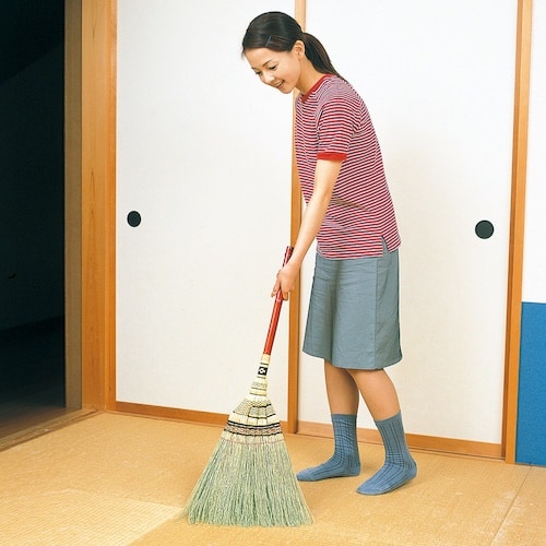 しっかり掃けるのに軽い上級手編み箒。 |
