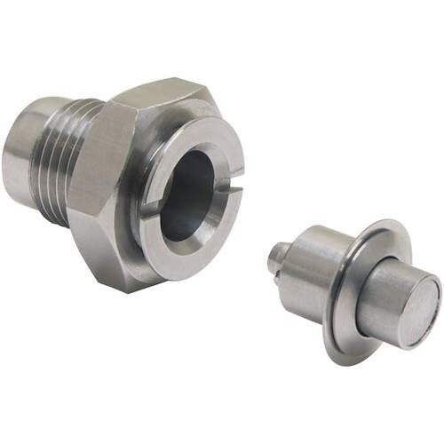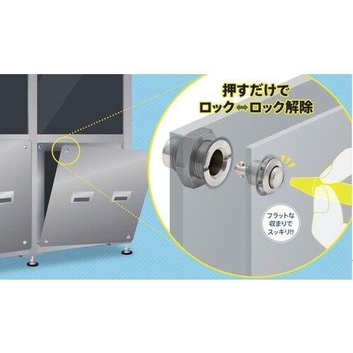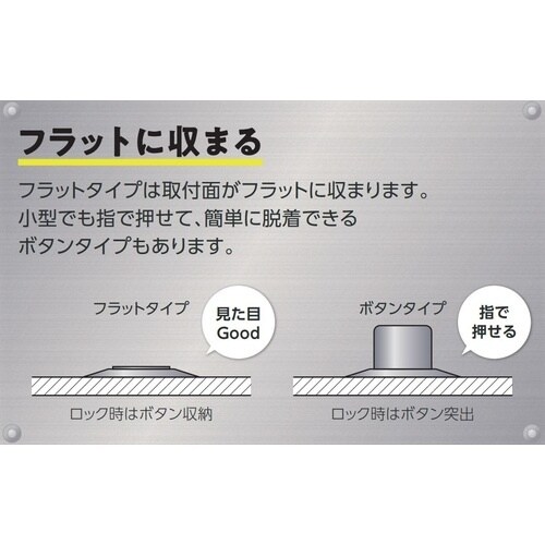 ロックおよびロック解除ともに、プラグの頭を押すだけのワンタッチ操作です。ロック時にプラグの頭が誤解除防止のためフラットになります。ロックおよびロック解除する際は、先のとがったもので押してください。 |