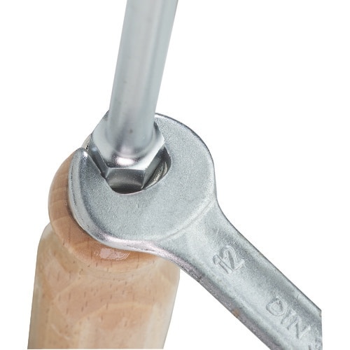手になじむ木製ハンドルを採用しています。スパナでボルスター部を回せば増し締めができます。ブレードがハンドルを貫通しています。ネジの締付け、緩め作業に。 |