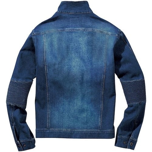 肘に優れた伸縮性蛇腹を採用。機能性に優れ、二重構造ソフトストレッチでアクティブに動けるデニムジャケット。軽作業に。アウトドアに。普段着に。作業着に。