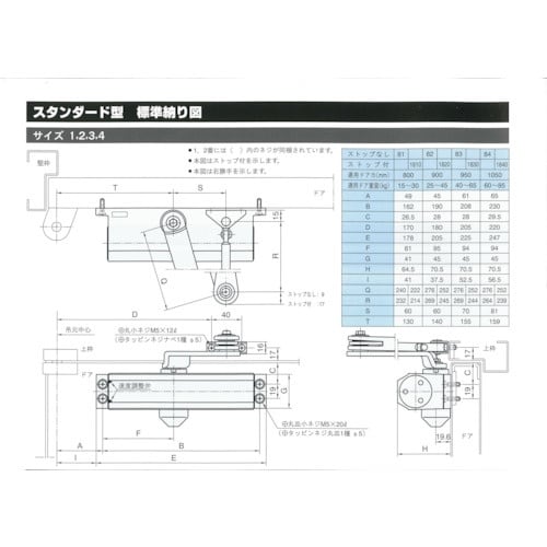 ドア閉じ速度を2速調整可能なドアクローザです。全機種とも左右勝手共用です。開戸用。 |