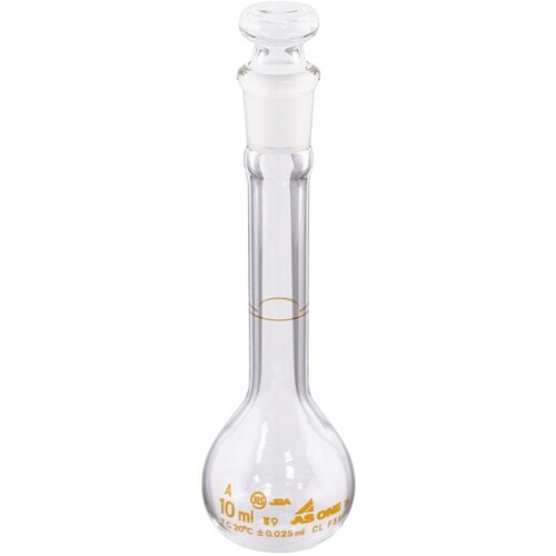 高精度タイプはJIS規格以上の精度です。共通:茶フラスコは外側表面を特殊インクで褐色コーティングを施していますので、着色による金属イオンのコンタミネーションから内部溶液を守ります。 |