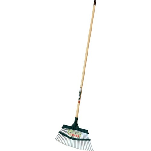 爪幅が広く平らになっているので芝生を傷めにくく、刈った芝を楽にかき寄せることが出来ます。頭部に曲面をつける事により、使用時に先爪が地面に均等に接地しかき寄せの効率がアップします。25本爪タイプです。 |