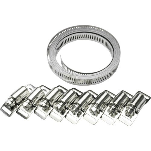 必要な長さにカットし様々なサイズのホースクランプを作成できるセットです。バンド部は丈夫なステンレス製です。 |
