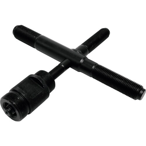 バイクのフライホイールを取り外すための特殊工具です。十字型の各シャフトとアダプターには、異なったネジサイズが設定されているので、様々なフライホイールのネジに適用します。 |