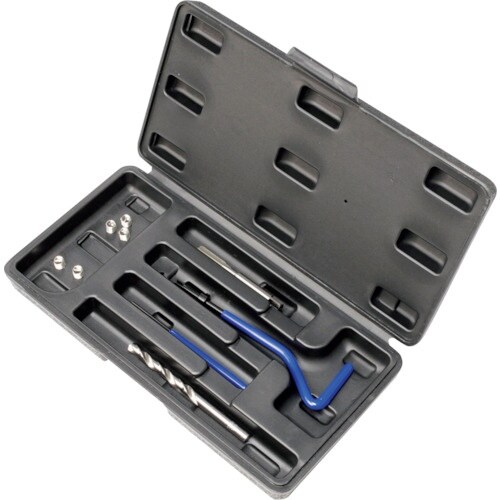 なめて潰れしまったねじ山を、修正するキットです。スクリューコイルをねじ山とすることで、強度の高いねじ山を再生できます。新たなねじ山を作成するときにも使用できます。保管に便利な専用ケース付きです。