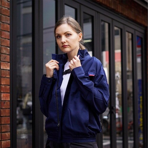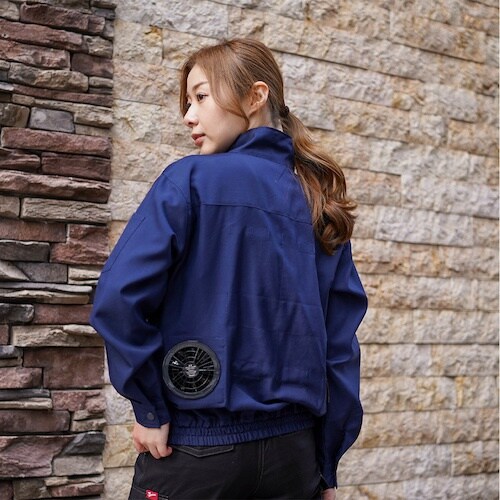 日本製生地:ポリエステル90%+コットン10%の高品位(高耐光、制電性、防シワ加工)で着心地の良いユニセックス仕様の空調ブルゾンです。