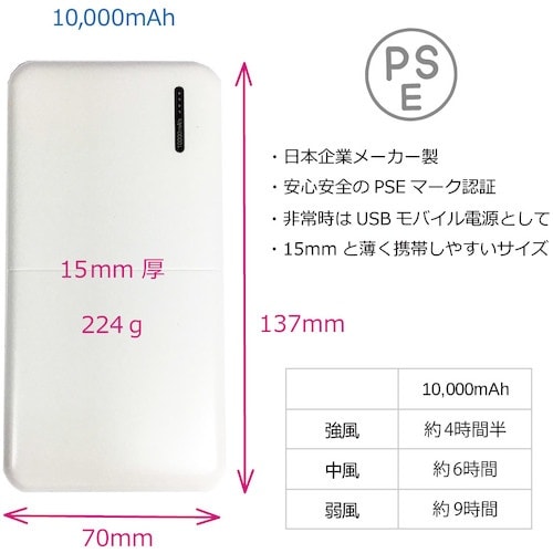 ※ブラシレスファン、USBリモコン付きケーブルは他社製の商品と組み合わせての動作を保証しておりません。使用後はバッテリー残量が少ないまま放置せず、使用後はすみやかに充電を行って下さい。シーズンオフ時にも充電を行ってから長期保存をしていただくようお願い申し上げます。日中の車内をはじめ45℃を超える環境下には絶対に放置しないで下さい。バッテリー本体温度が氷点下の時に充電を行いますと事後に重篤な危険を伴う恐れがございます。