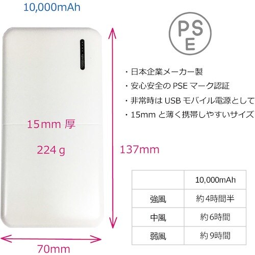 ※ブラシレスファン、USBリモコン付きケーブルは他社製の商品と組み合わせての動作を保証しておりません。使用後はバッテリー残量が少ないまま放置せず、使用後はすみやかに充電を行って下さい。シーズンオフ時にも充電を行ってから長期保存をしていただくようお願い申し上げます。日中の車内をはじめ45℃を超える環境下には絶対に放置しないで下さい。バッテリー本体温度が氷点下の時に充電を行いますと事後に重篤な危険を伴う恐れがございます。