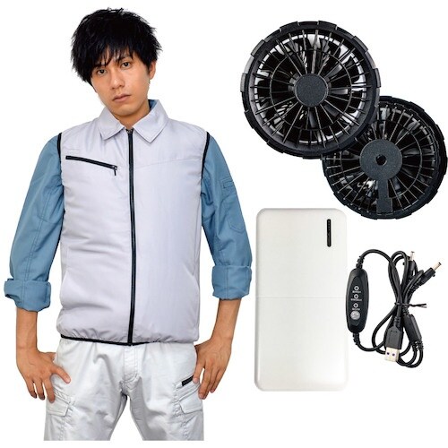 岡潮 岡潮 空調ベストセット20203 シルバー S ブラシレスファン・モバイルバッテリー付 A014-4815