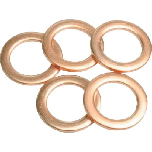 銅製の平型ワッシャーです。柔らかい材質なので、密着性がよくシールパッキンとして使用できます。自動車やバイクのドレンやオイルラインなどのパッキンに最適です。