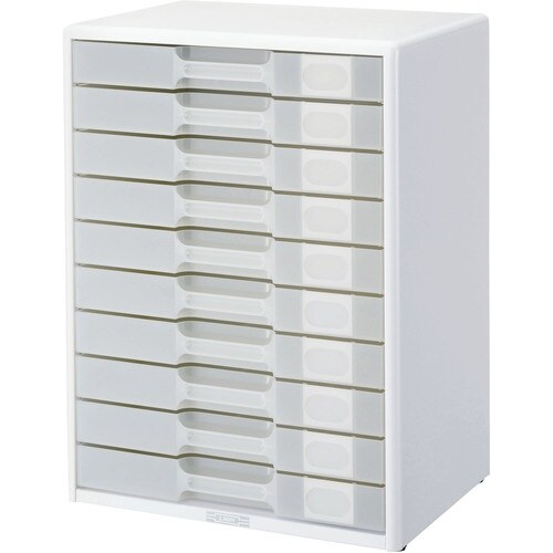 間口(mm):349 | 奥行(mm):253 | 高さ(mm):469 | 色:ホワイト | 引出し:A4判横型10段・再生ポリスチレン樹脂製 | …