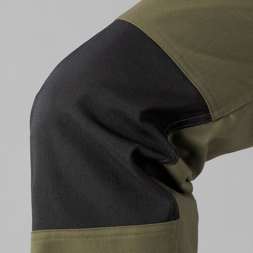 肘・膝・脇部分に耐摩耗に優れたコーデュラストレッチRを採用しています。自動車整備などに。作業全般。 |