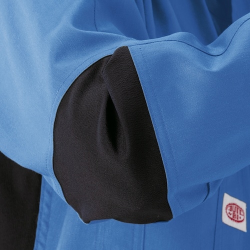 肘膝脇に高強度かつストレッチ性を備えたコーデュラRを採用しています。自動車整備などに。作業全般。