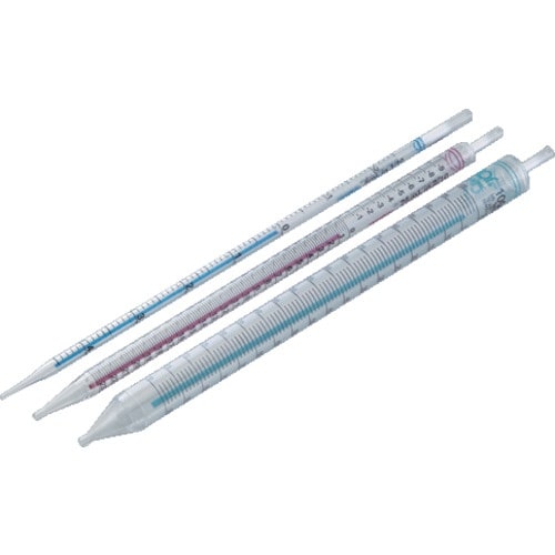 色分けされた目盛がピペット内の液で拡大されるので、容量の読み取りが容易です。 先端部は液だれ防止形状で、液量を正確に量ることができます。 |