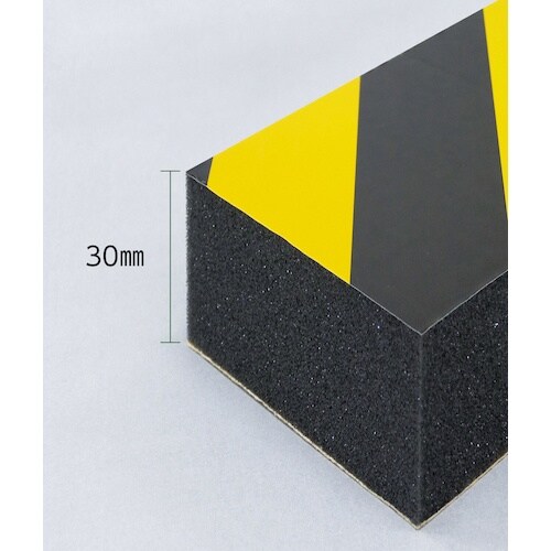 危険標示にクッション機能をプラスしました。建物の凹凸部分に手軽に貼れ、危険標示とクッション機能で人や建物を保護します。トラ柄が事前の注意喚起を促し、30mmの厚いクッションが衝突時の衝撃を緩和します。 |